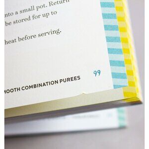 Comprehensive guide for organic baby food with recipes for all stages, from purees to finger foods, in a colorful and detailed format.