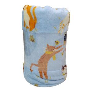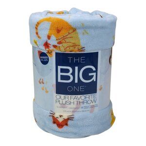 The Big One Plush Throw Blanket 5x6 Oversized Cat Print Blue Polyester Faux Fur