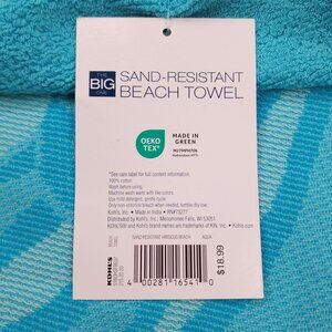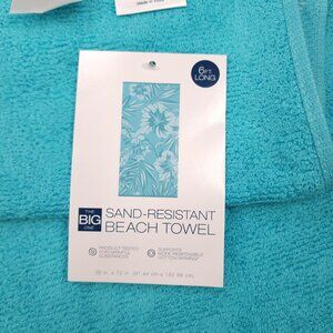 The Big One Sand Resistant Beach Towel 36" X 72" Hibiscus Design Cotton Green