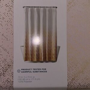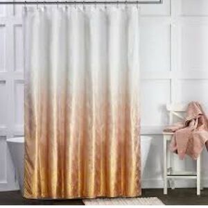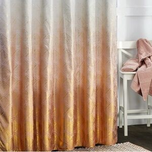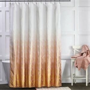 Elevate your bathroom decor with this elegant shower curtain. Features a chic gold pattern on a cream background. Perfect for a modern touch.