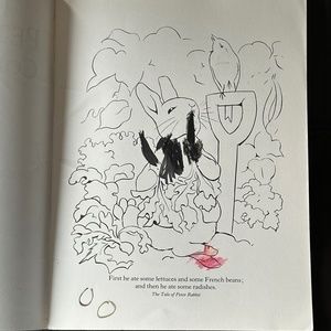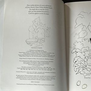 A couple of the pages have been torn out and the first Peter Rabbit coloring page has marks on it but you get most of the book to color. Perfect for fans of Beatrix Potter's classic characters including Peter Rabbit, Benjamin Bunny, Jeremy Fisher, the Flopsy Bunnies, Jemima Puddle Duck and more!