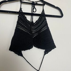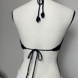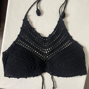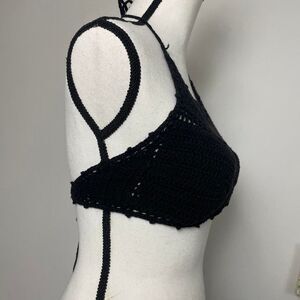 The Bikini Lab Black Crochet High Neck Halter Top Bikini Top Size Medium