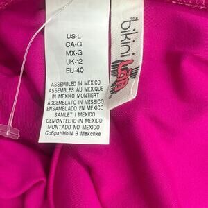 The Bikini Lab Fuchsia Pink Plunge Shirred VNeck Halter One Piece Swimsuit Large