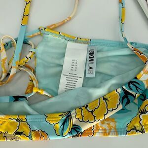 The Bikini Lab Spanish Bloom Lace Up Back Swim Top Size Large NWT Blue Yellow