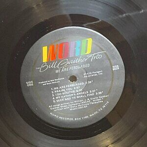The Bill Gaither Trio We Are Persuaded (Vinyl, 1979) Word WSB-8829 VG. Used with some wear and blemishes see pictures sold as is. Cover has some edge wear and creases. Original inner sleeve in very good condition. Record has some light scratches.