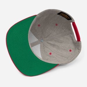 The Bird snapback has a classic structured fit, full buckram, and it's made of a premium wool blend. The visor is flat, and the green under-visor gives it a vibrant pop.