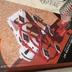 Set includes - 1 blaster, 12 foam darts, 1 rotating windmill, 6 magnetic targets, 1 instruction set