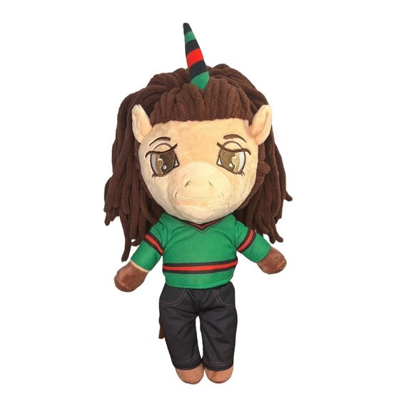The Black Unicorn Doll Plush Dreds Boy Green Shirt Stuffed Animal