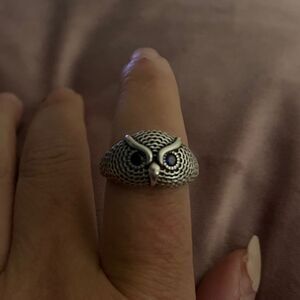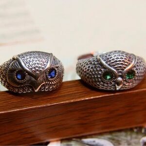 The Blue Eyed Owl Ring in antiqued 925 silver