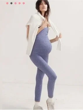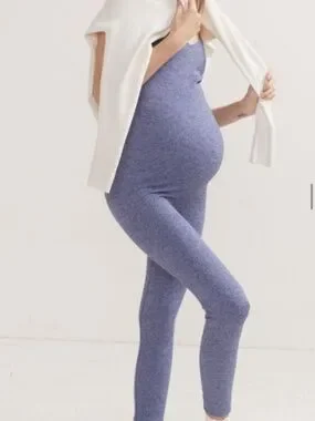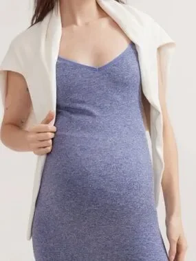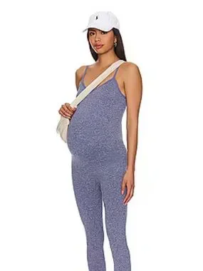 Stretch ribbed maternity jumpsuit for a smooth, supportive fit. Designed to accommodate a growing belly with gentle compression. Versatile layering piece for everyday wear. Soft heathered blue tone pairs easily with neutrals.