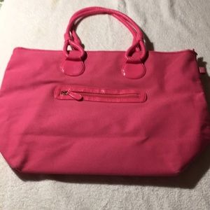 The Body Shop Tote Bag. GUC, makes a great travel or beach bag. So roomy with plenty of pockets to store all the essentials. Full zip close, comfortable handles and small outside zipper pocket. Measures 20” x 14” x 6.5”. Smoke Free Home.