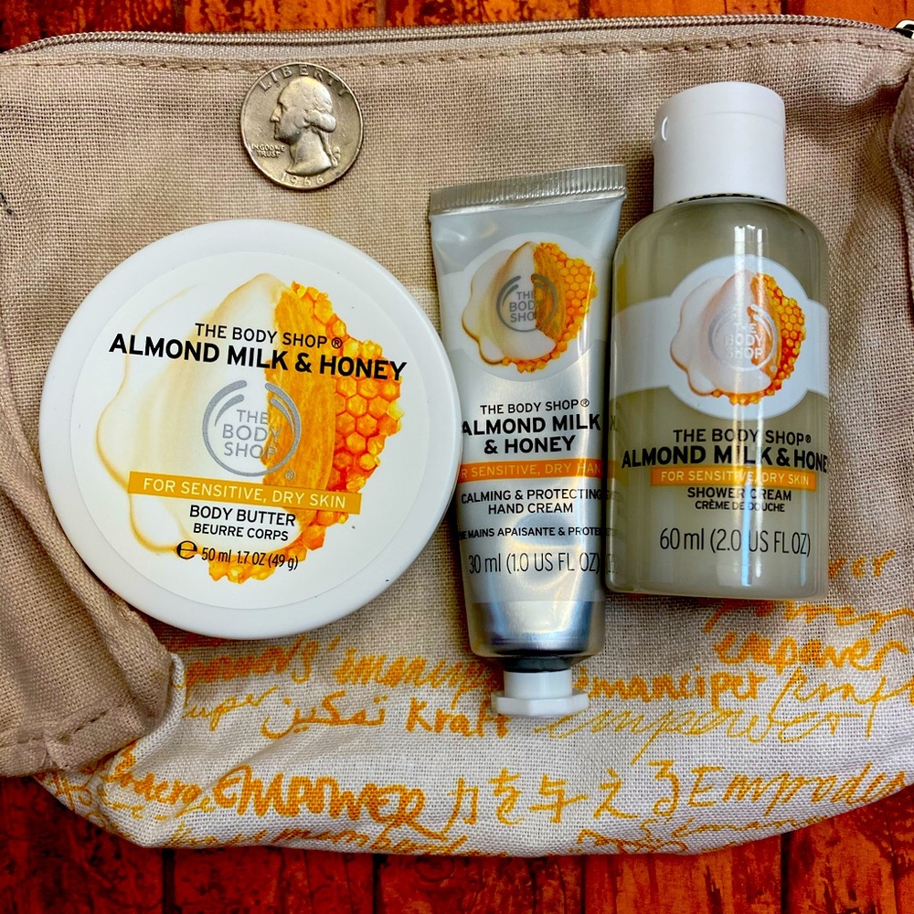 Almond milk and honey travel set , comes with canvas travel bag