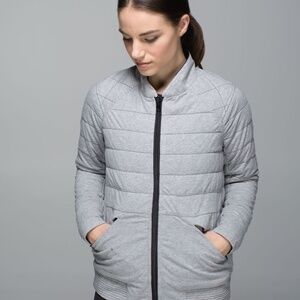 This reversible, lightweight puffy jacket is perfect for iffy weather. One side helps keep us dry with water- and wind-resistant fabric, while the other side is made from soft jersey fabric that's soft against our skin. Did someone say singing in the rain?