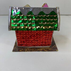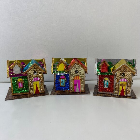 The Bombay Company 3 Colorful Sequin House Ornaments Festive Decor Display