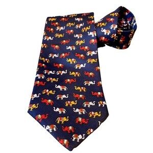 The Bombay Store Silk Elephant Blue Red Gold Neck Tie