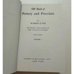 The Book Of Pottery And Porcelain Warren E. Cox (1970, One-Volume Edition)