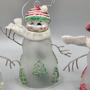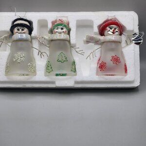 The Bradford Editions Snowman Family Glass Bells Ornaments Christmas Winter