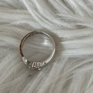 Solid sterling silver with 18K gold and rhodium plated ring with hand enameled Mickey Mouse and CZ crystal pave stones. Based on my measurement, this is a size 8 ring. There is some wear at the side, otherwise in great condition. No other flaws or damage to note.