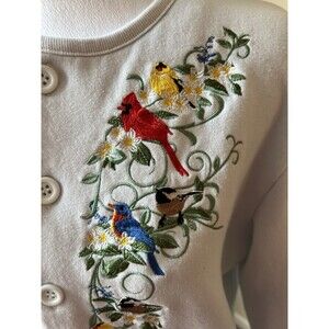 The Bradford Exchange Embroidered Birds Button Up Sweater Size Medium Cardinal