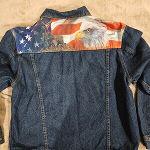 The Bradford Exchange Men's USMC Jean Jacket M Semper Eagle Flag Wearable Art