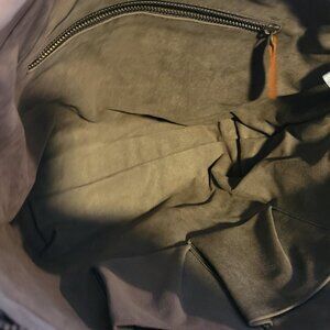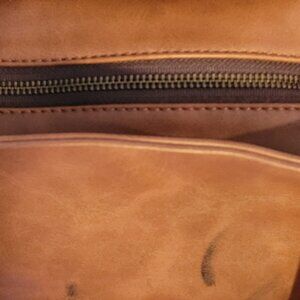 Fall in "puppy love" with this delightful tote bag that pays homage to the furry love of your life - your faithful canine companion. Now, you can enjoy the company of your furry friend wherever you go with the Peek-a-Boo Pup Tote Bag, a custom design available only from The Bradford Exchange. The center panel of this tote features unique artwork of this beautiful chocolate Labrador peeking out from the front pocket. Below the large slip pocket is the word "LOVE" with the letters arranged in a stacked design that replaces the "O" with a perfect paw print for a look that's both playful and stylish. The bag is expertly crafted in softly marbled faux leather in two warm tones of brown. The top-zip closure keeps all your belongings secure, while the faux suede-lined interior boasts two slip pockets and a zip pocket to organize all your essentials. Antiqued bronze-finish hardware is featured throughout for the perfect finishing touch. 13" high not including straps by 17" wide by 5" deep. The straps are 10" long. Retailed for $129.95 on the Bradford Exchange website. New without tags. Would make a great gift for someone with this lovely dog breed.