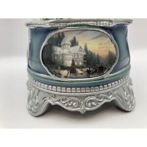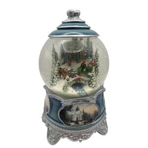 This beautiful Bradford Exchange Thomas Kinkade 'Jingle Bells' Christmas musical snow globe is in like-new condition and comes with its original box. It would make a wonderful addition to your holiday decor or a thoughtful gift for a loved one.