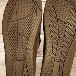 Elevate your shoe game with these stylish moccasins from The Bradford Exchange. Designed with a camouflage pattern and slip-on closure, they're perfect for any casual occasion. These shoes come in a size 12 and feature a brown color with synthetic upper material and fabric lining. Excellent condition, no flaws.