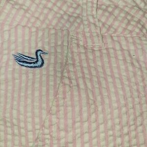 Duck embroidery above front pocket.