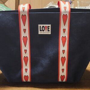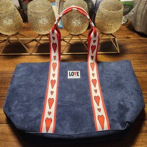 The Brighton Velveteen Love Tote Bag in Navy Hearts