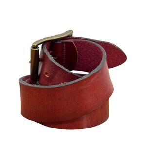 The British Belt Co Red Leather Belt SZ 40 Mens Brass Buckle Classic Wide Thick Pop Of Color