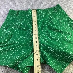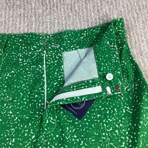 Stylish and functional shorts for an active lifestyle. These green shorts feature a unique white abstract print and are designed with performance in mind, boasting moisture-wicking and breathable fabric. They also offer sun protection, making them ideal for outdoor activities. Details include a classic button and zip closure, and a flattering cut suitable for various body types. These shorts are perfect for a round of golf, a casual brunch, or a day at the park.