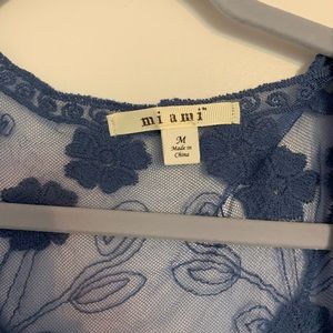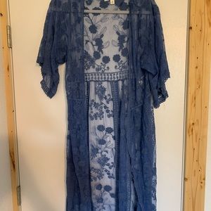 3/4 length sleeves. Blue lace. Comfortable and lightweight. Knee length.