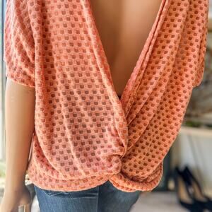 The Buckle, DayTrip, Textured Tillman Coral Top w/ Open Weave and Twisted Open Back