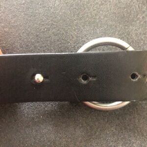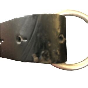 The Buckle Leather Chain Belt Black Silver Hardware Size M/L. 16 Layers of chain. Where the leather is cinched through the leather there is some wear, however because it bends there not very noticeable but yet is there.. see pics. Cool belt. Measures 44” tip to tip. 5 adjustable holes.