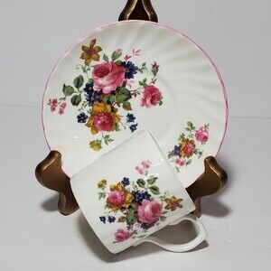 The Butchant Gardens demitasse (small) teacup and saucer. Fine bone china made in England. Cups is 2.25" tall and saucer is 5" across. No chips or cracks.