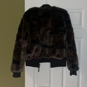 Very cute Anthropologie camo fur bomber jacket. Very warm for fall winter. Size M.