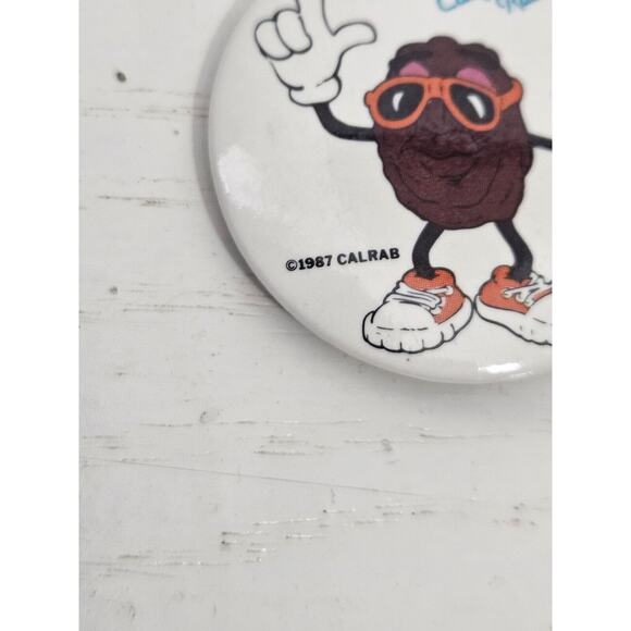 The California Raisins Vintage Button Pin Dancing Raisin Pinback White Red 1987