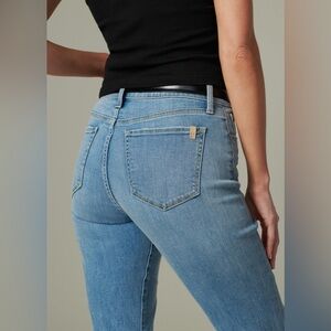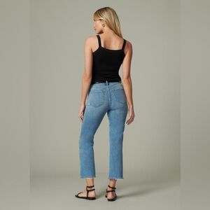 The Callie in Unapologetic is a high-rise cropped bootcut jean with the fit and recovery of super stretch. The denim comes in a worn-out, light wash with finished hems, edge grinding and top whiskering.