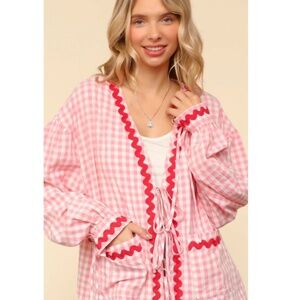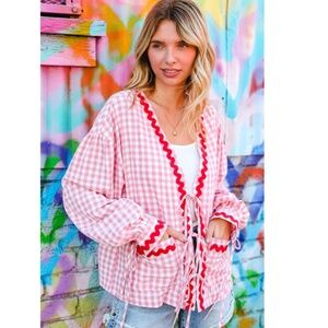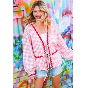 🌟 "The Carmela" Ribbon Tie Gingham Oversized Jacket with Pockets