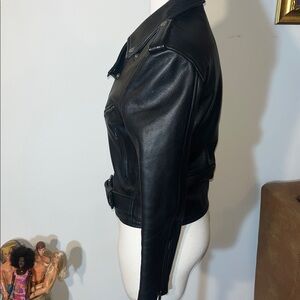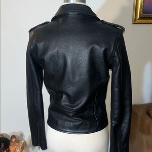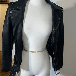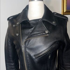 Preloved black leather biker jacket in worn condition a few minor imperfections see pics otherwise tons of love left no holes no ripped seams