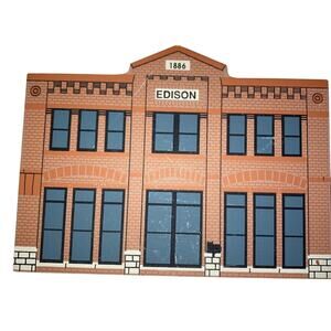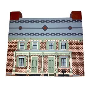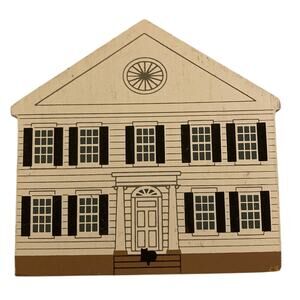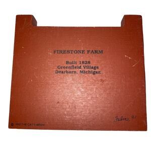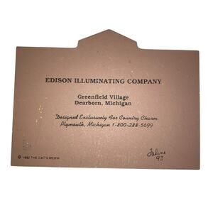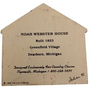This listing features a lot of four (4) original 1992 The Cat’s Meow Village buildings, each representing historic structures from Greenfield Village in Dearborn, Michigan. These pieces were designed exclusively for Country Charm and include the classic black cat silhouette signature on the front.