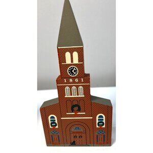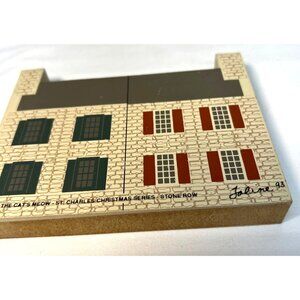 This 4 Pc Set from The Cat's Meow 1993 St. Charles Christmas Series features intricately detailed, brown and beige wooden collectible village houses. Perfect for collectors or holiday decor.