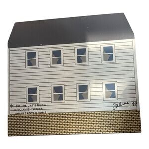 This ¾” thick Jonas Troyer Home is hand screen printed on the front and back. It is part of a four-piece series of buildings called Ohio Amish Series, created by Cat’s Meow founder, Faline Jones, in her nineth year of business. This series was introduced in 1991 and retired January 1998.