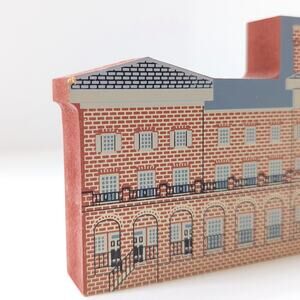 Step back in time with this charming Cat’s Meow Village collectible, depicting the historic Natural Bridge Hotel in Rockbridge County, Virginia. Designed exclusively for Apple Barn in Troutville, VA, this retired 1997 piece captures the stately brick architecture of the rebuilt 1964 hotel that replaced the original Victorian structure lost to fire in 1963. A nostalgic keepsake for collectors of Virginia landmarks and Cat’s Meow Village miniatures.