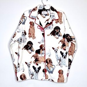 Excellent quality super cute PJ top by the Cats Pajamas. Has puppies and dogs all over print.