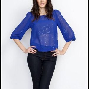 Blue chiffon blouse with silver accented pattern. Item is New, boutique item. Priced at lowest I can accept. No offers please.
