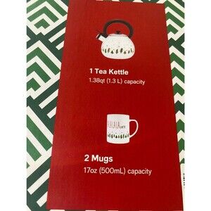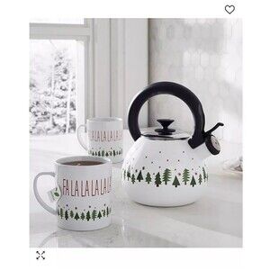 The Cellar Holiday Christmas Enamel Tea Kettle Stoneware Mug Set Host Gift NWT