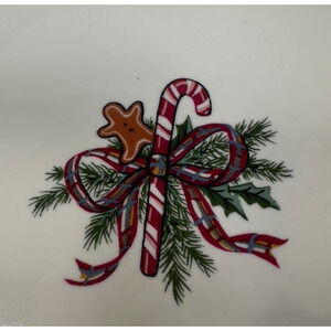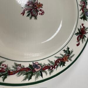 The Cellar O'Tannenbaum, 1 Large Rim Soup Bowl, Holly & Ribbon Border Christmas ** Trim Off Edge