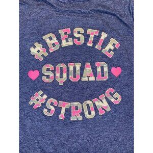 Features- blue short sleeve graphic tee, camo print on front, 50% cotton, 50% polyester, 12" pit to pit, 18.5" long