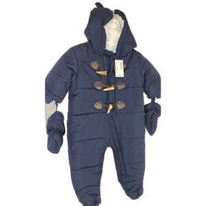 The Children's Place Snow Suit, New with Tags. Color: Navy Blue shell, cream fleece lining. Snap on mittens included.